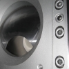 All the surfaces contacting the dough are made of stainless steel. It cuts the dough with its weight thanks to the vacuum generated by piston cylender movement.